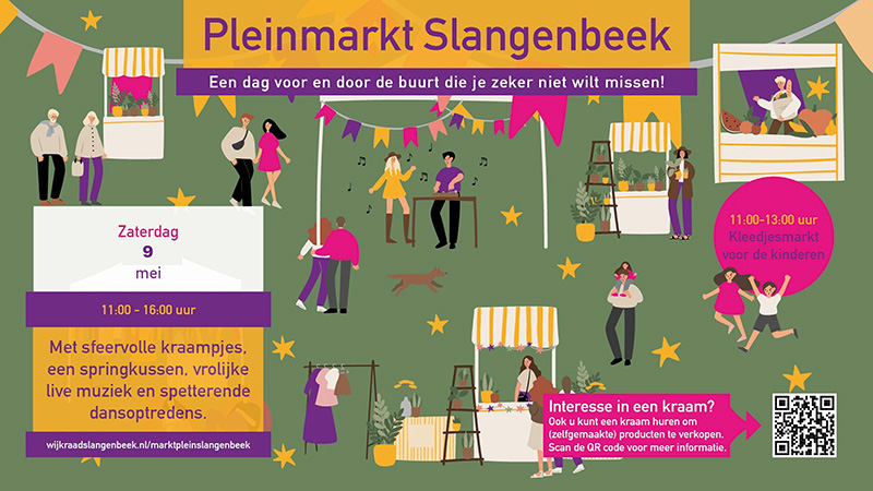 Zaterdag 9 Mei 2026 organiseert Wijkraad Slangenbeek van 11:00 tot 16:00 uur de derde editie van de Pleinmarkt.